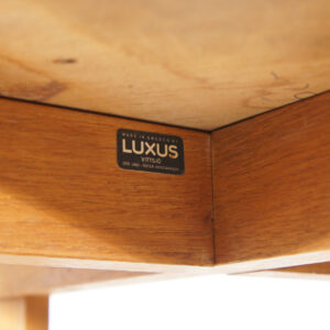 Östen & Uno Kristiansson for Luxus, Sweden. Stool in oak with seat in leather. Height 43, diam 39 cm.